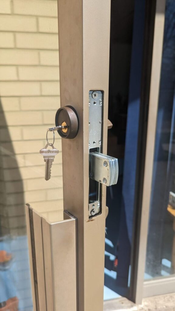 - Thermal break aluminum doors: two aluminum profiles separated by a polyamide thermal break to reduce condensation and heat transfer. Common in energy-conscious commercial buildings. Requires compatible hardware and careful frame repair to maintain thermal performance.